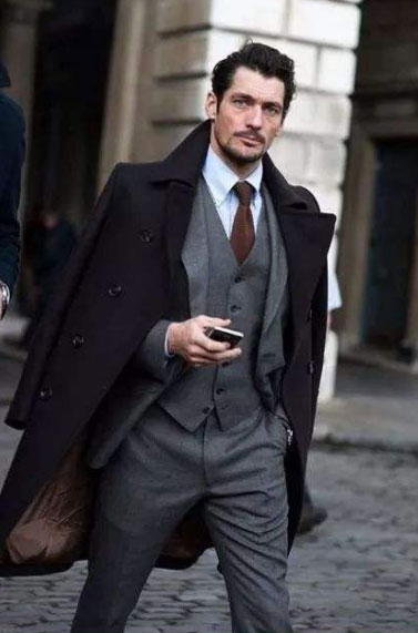雙排扣大衣,也被稱為男士型男必備的戰衣。幾乎所有喜歡穿西裝的男士,在冬天的衣櫥里一定會有一件雙排扣大衣,它賦予了我們強大的氣場,即使是面對冷冽的寒冬,也能做到絲毫不倒。雙排扣的講究就在與它扣子的數量。扣子數量多,容易顯脖子短,扣子數量少,保暖度又下降。因此,經典的6粒扣才是最正確的選擇。