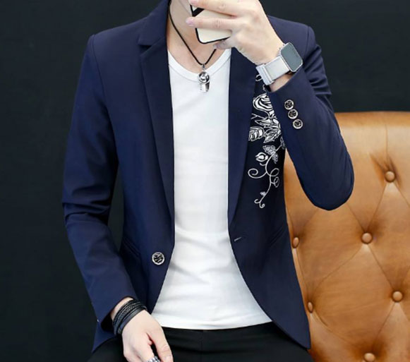 西服是結(jié)構(gòu)相對(duì)規(guī)范的服裝品類(lèi),要體現(xiàn)伙伴們脾性偏好是比較難的。除了在扣子、兜、開(kāi)衩等基本的變化外,還可以從里料選擇以及刺繡、印花、拼色等工藝變化。