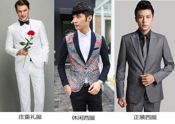 根據(jù)穿西服可能出席的場(chǎng)所,大體可分成三類(lèi):禮儀場(chǎng)所、商務(wù)場(chǎng)所、休閑場(chǎng)所。