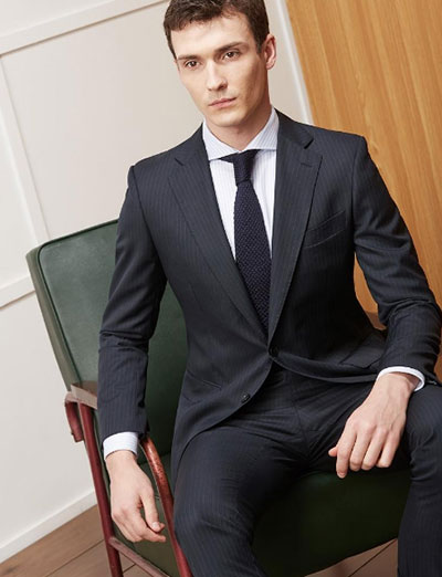 深藍(lán)色給人尊敬端莊的感覺,充滿了成熟與睿智,是職場里認(rèn)可度最高的西裝。嚴(yán)密有序的線條之間編織著職場男士最穩(wěn)妥、最嚴(yán)謹(jǐn)?shù)墓ぷ鲬B(tài)度,簡潔優(yōu)雅,又自然流露出溫文爾雅的紳士風(fēng)度。