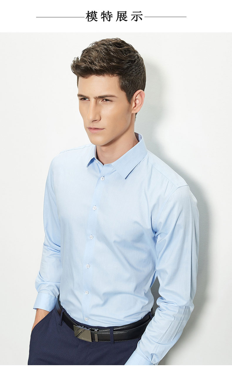 男士商務(wù)職業(yè)襯衫采用純棉面料制作,舒適柔軟,透氣吸濕,給人清爽的感覺.