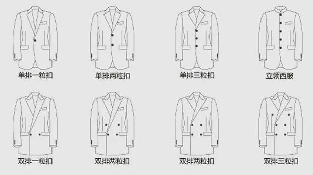 一般而言,西裝前襟的紐扣數(shù)量越少,V形區(qū)域越深,越可以更多露出穿在里面的襯衫和馬甲式樣,西裝顯得越正式,越適合搭配禮服款西裝。反之,紐扣的數(shù)量越多,V形區(qū)域越淺,越適合休閑款西裝(中式除外),商務(wù)正裝一般以兩粒扣居多。